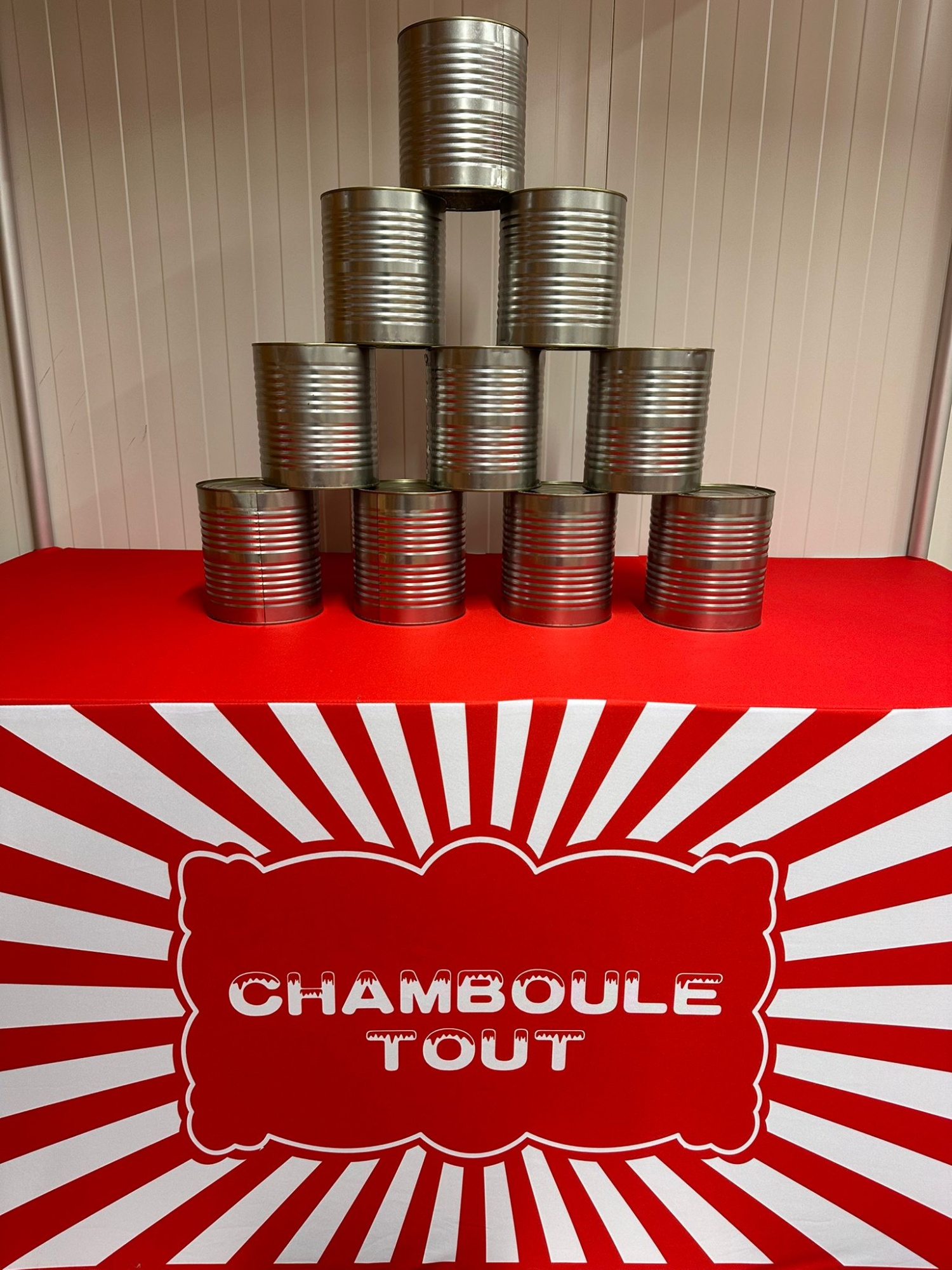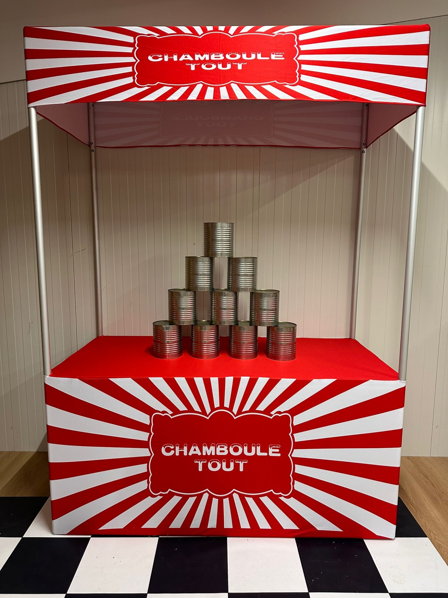 Vous souhaitez animer votre événement avec une activité ludique et originale ? Ne cherchez plus ! Nous vous proposons la location de notre chamboule tout personnalisé, une attraction qui saura captiver petits et grands !