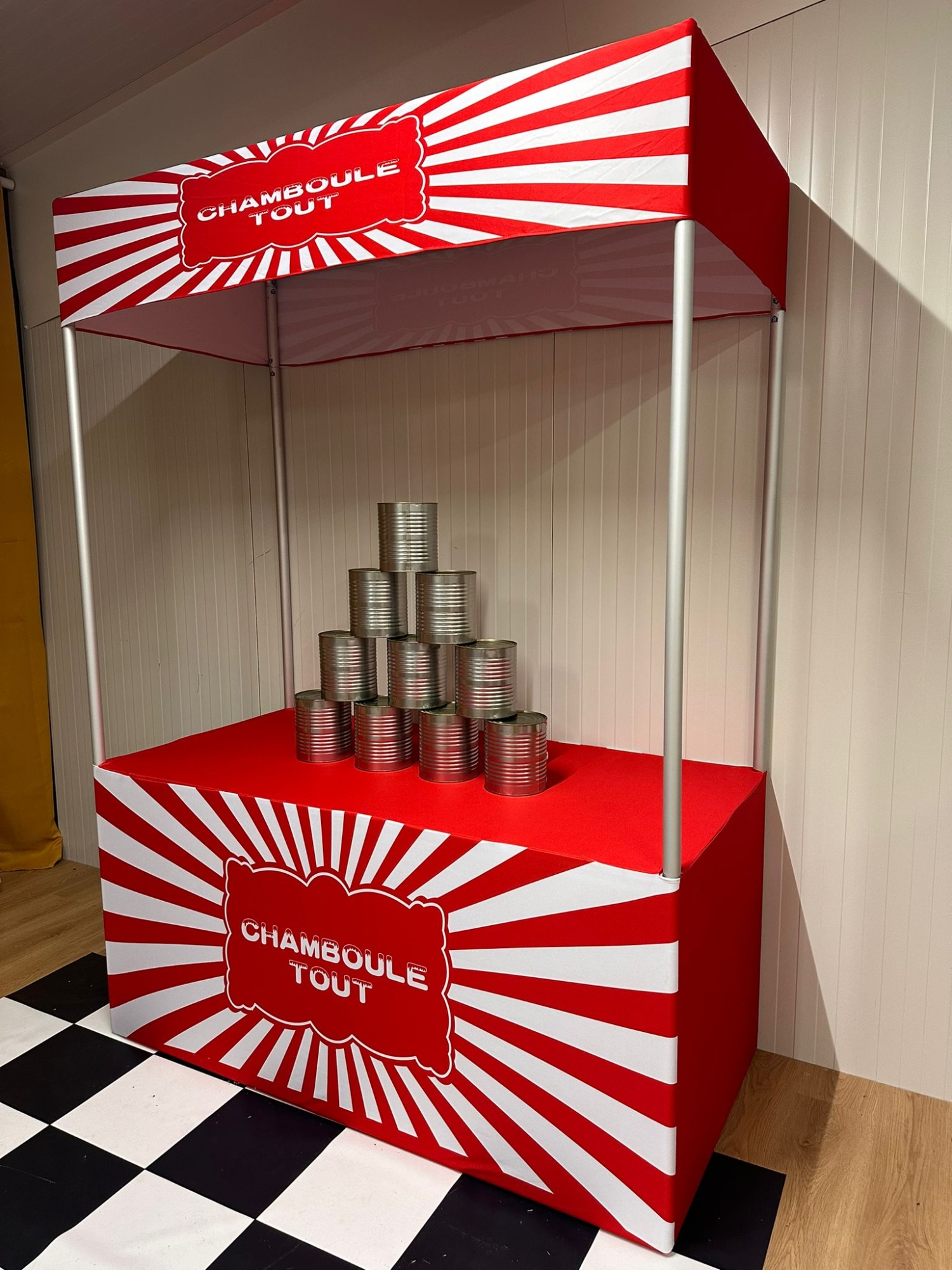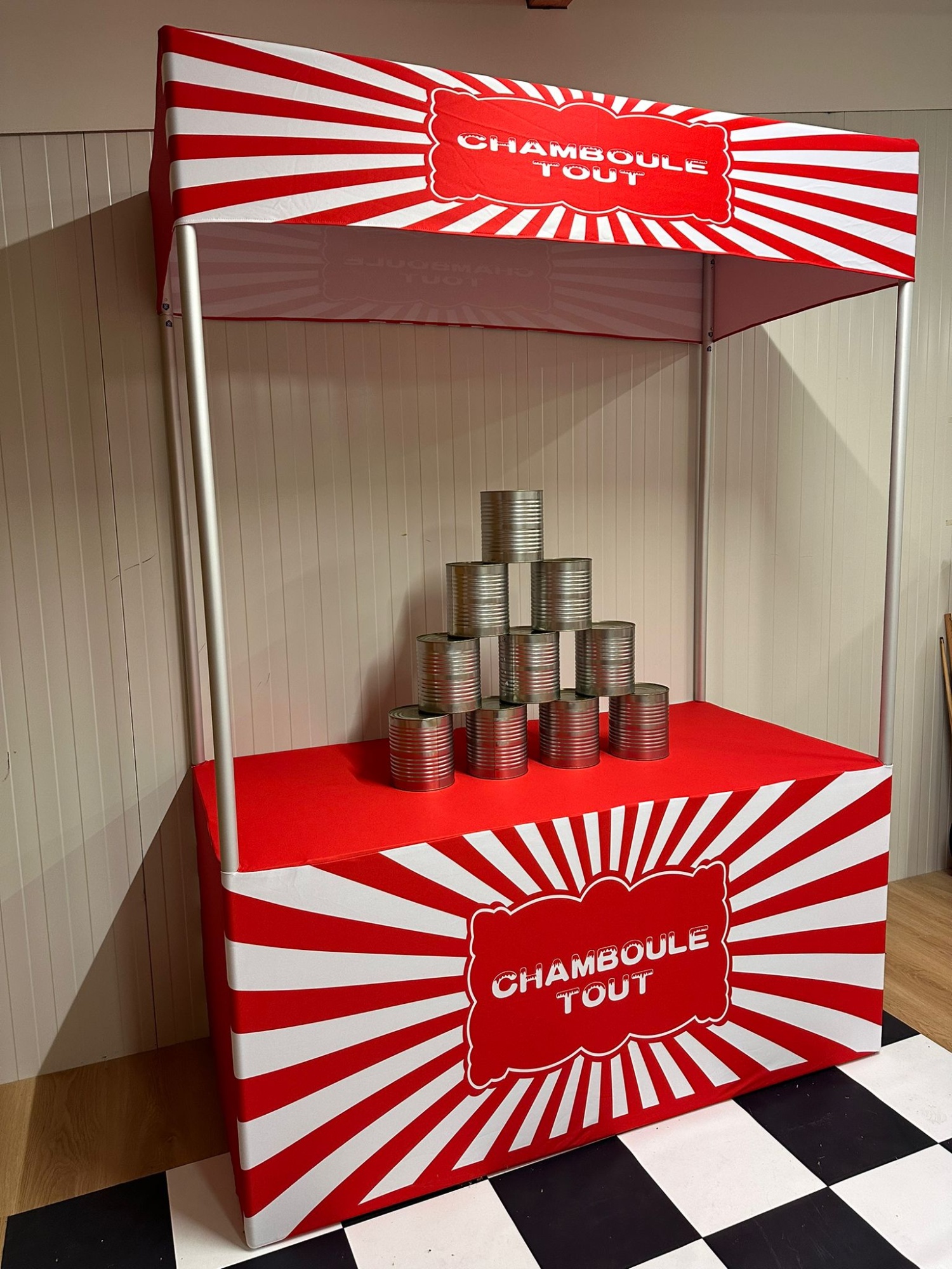 Vous souhaitez animer votre événement avec une activité ludique et originale ? Ne cherchez plus ! Nous vous proposons la location de notre chamboule tout personnalisé, une attraction qui saura captiver petits et grands !